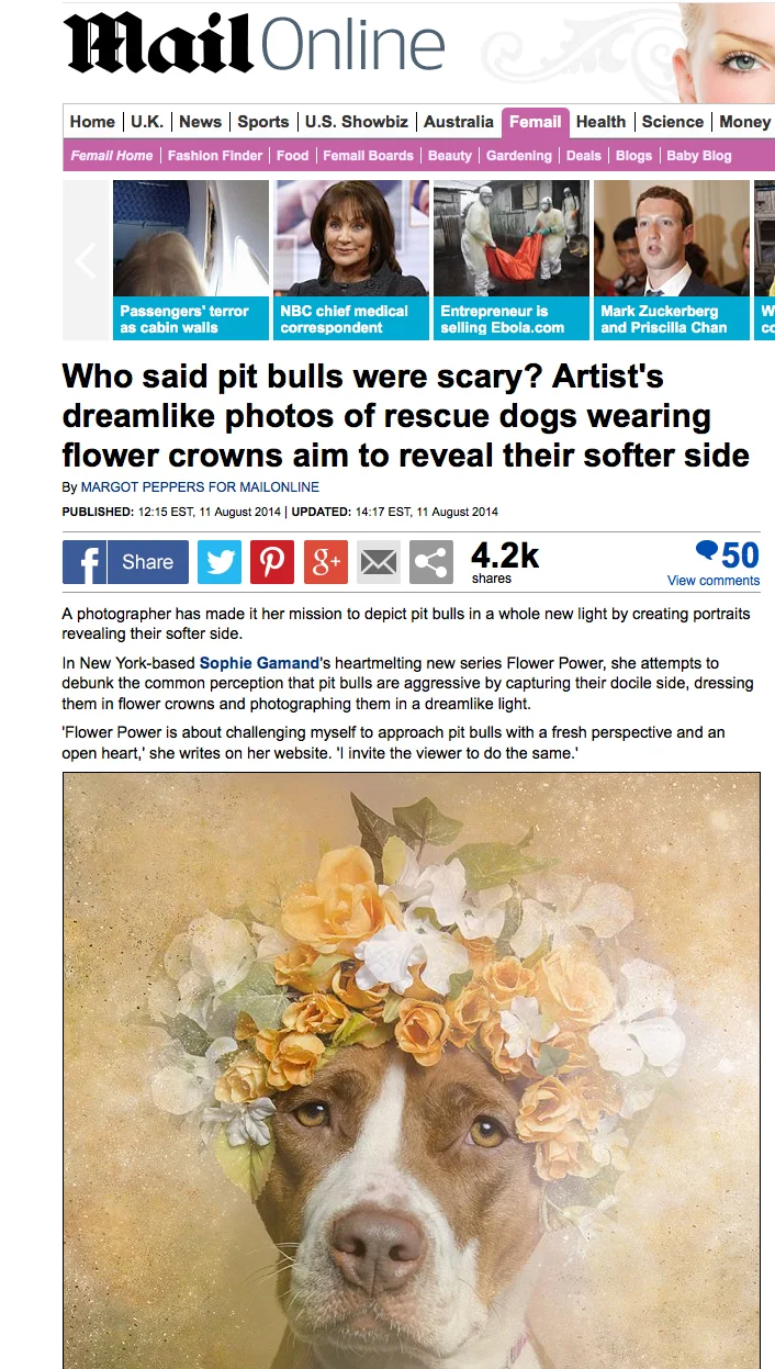 Sophie's work has been featured notably on National Geographic, The Huffington Post, Medium/Vantage, Time out New York and London, Süddeutsche, the Daily Mail, The Mirror, The Telegraph, Guardian, The Independent, La Repubblica, El Colombiano, CNN, Yahoo, MSN, This is Colossal, Feature Shoot, View, on the TODAY show The Talk, Buzzfeed, Bored Panda, Laughing Squid, Slate, Andrew Sullivan’s The Dish, Gawker, My Modern Metropolis, Twenty Two Words...